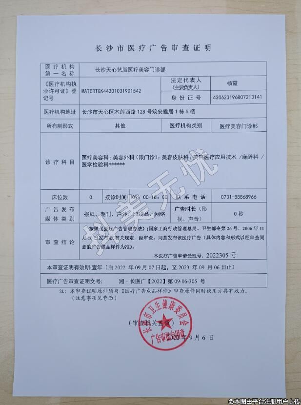 發(fā)證機關(guān):長沙市天心區(qū)衛(wèi)生健康局