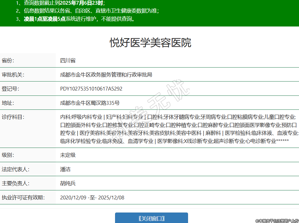 省份:四川省審批機關(guān):成都市金牛區(qū)政務(wù)服務(wù)管理和行政審批局登記號:PDY10275351010617A5292地址:成都市金牛區(qū)蜀漢路335號診療科目:內(nèi)科;呼吸內(nèi)科專業(yè) | 婦產(chǎn)科;婦科專業(yè) | 口腔科;牙體牙髓病專業(yè);牙周病專業(yè);口腔粘膜病專業(yè);兒童口腔專業(yè);口腔頜面外科專業(yè);口腔修復(fù)專業(yè);口腔正畸專業(yè);口腔種植專業(yè);口腔麻醉專業(yè);口腔頜面醫(yī)學(xué)影像專業(yè);預(yù)防口腔專業(yè) | 醫(yī)療美容科;美容外科;美容牙科;美容皮膚科;美容中醫(yī)科 | 麻醉科 | 醫(yī)學(xué)檢驗科;臨床體液、血液專業(yè);臨床化學(xué)檢驗專業(yè);臨床免疫、血清學(xué)專業(yè) | 醫(yī)學(xué)影像科;X線診斷專業(yè);超聲診斷專業(yè);心電診斷專業(yè)******級別:未定級法定代表人:潘潔主要負(fù)責(zé)人:胡純兵執(zhí)業(yè)許可證有效期:2020/12/09 -至- 2025/12/08 -