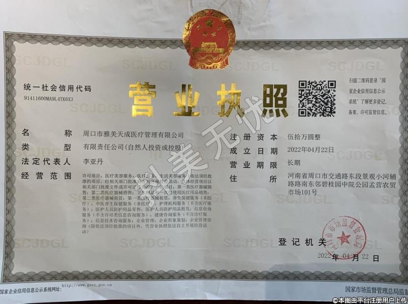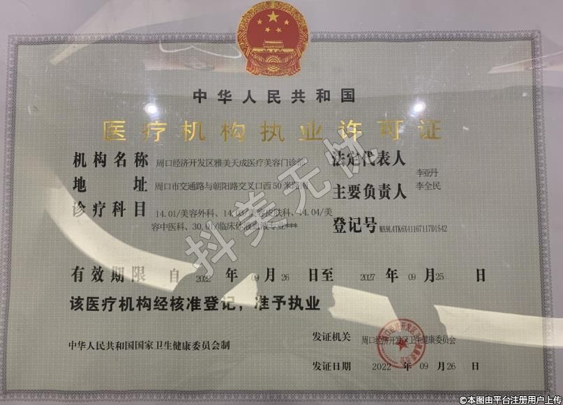 機構名稱:周口經(jīng)濟開發(fā)區(qū)雅美天成醫(yī)療美容門診部