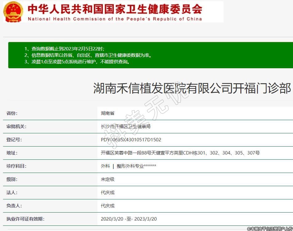 湖南禾信植發(fā)醫(yī)院有限公司開福門診部