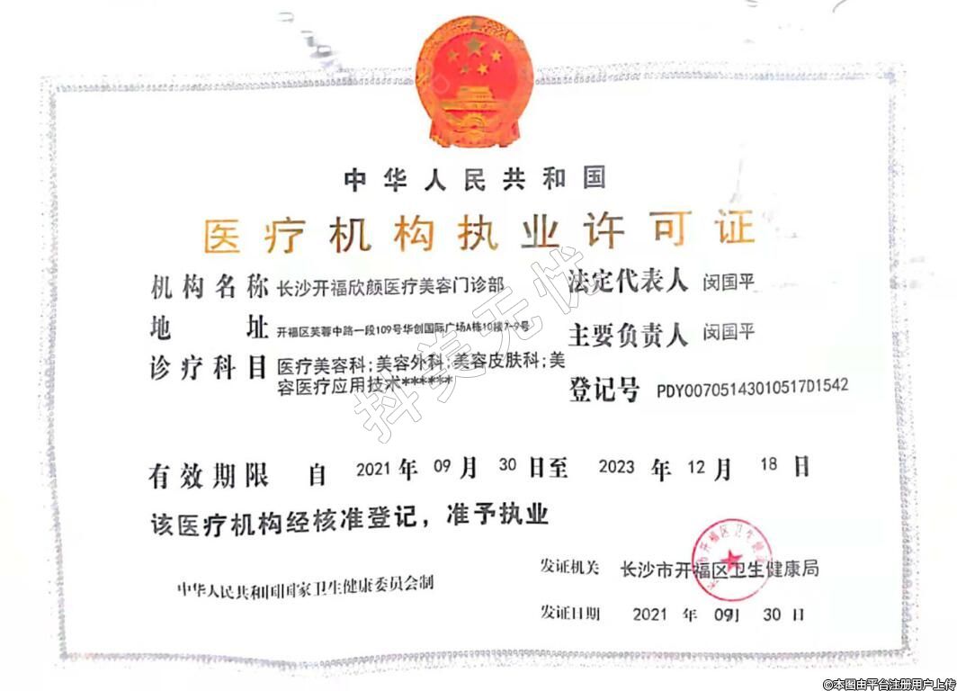 機(jī)構(gòu)名稱:長(zhǎng)沙開福欣顏醫(yī)療美容門診部