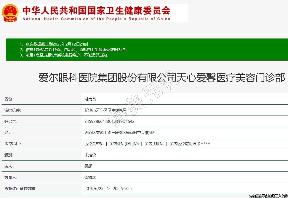 愛爾眼科醫(yī)院集團股份有限公司天心愛馨醫(yī)療美容門診部