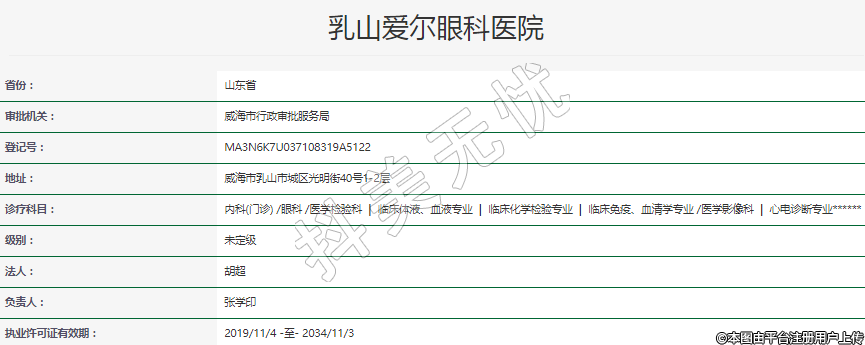 執(zhí)業(yè)許可證有效期:2019/11/4 -至- 2034/11/3