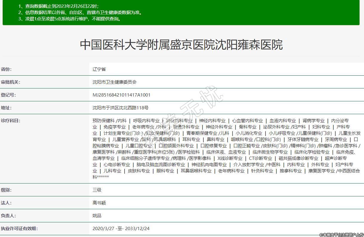 中國(guó)醫(yī)科大學(xué)附屬盛京醫(yī)院沈陽(yáng)雍森醫(yī)院
