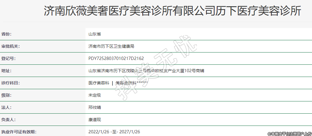 濟南欣薇美奢醫(yī)療美容診所有限公司歷下醫(yī)療美容診所