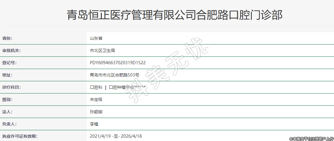 青島恒正醫(yī)療管理有限公司合肥路口腔門診部