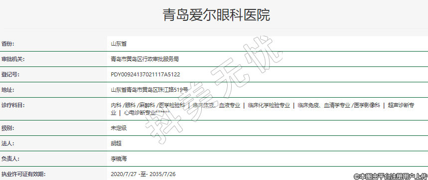 執(zhí)業(yè)許可證有效期:2020/7/27 -至- 2035/7/26