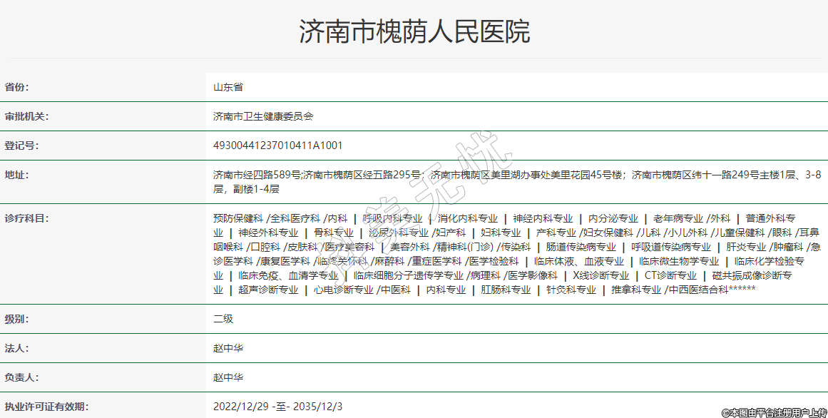 地址:濟(jì)南市經(jīng)四路589號;濟(jì)南市槐蔭區(qū)經(jīng)五路295號;濟(jì)南市槐蔭區(qū)美里湖辦事處美里花園45號樓;濟(jì)南市槐蔭區(qū)緯十一路249號主樓1層、3-8層,副樓1-4層