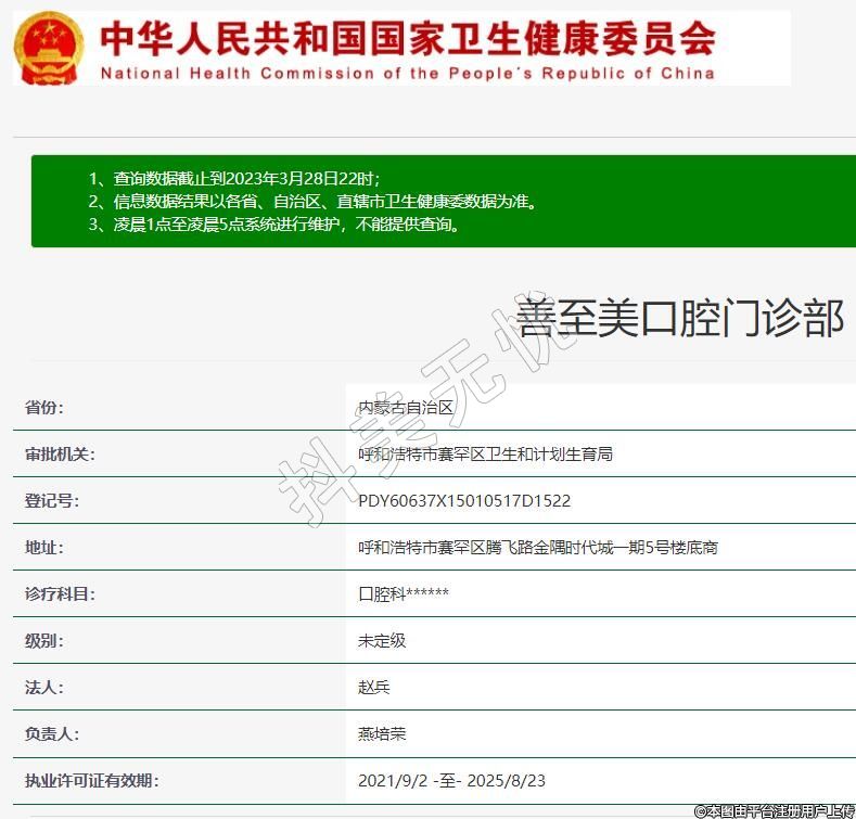 呼和浩特至美口腔(騰飛路店)診療科目:口腔科******