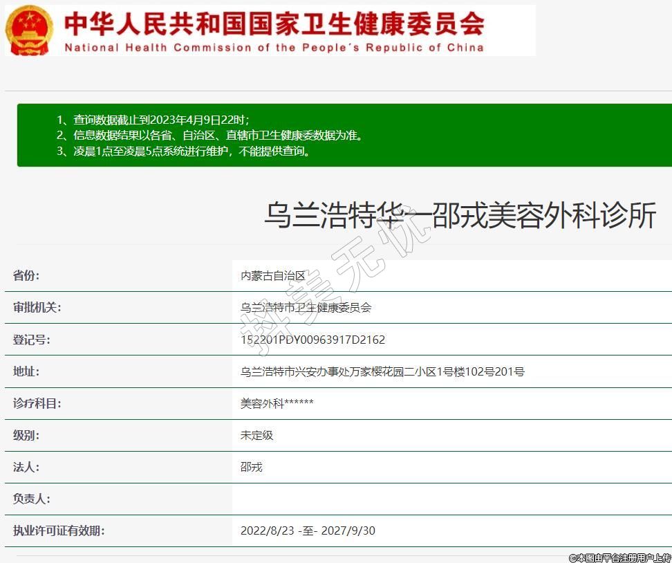 執(zhí)業(yè)許可證有效期:2022/8/23 -至- 2027/9/30