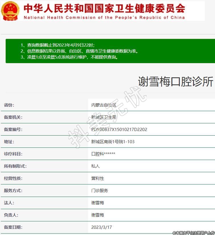 呼和浩特謝雪梅口腔診療科目:口腔科******