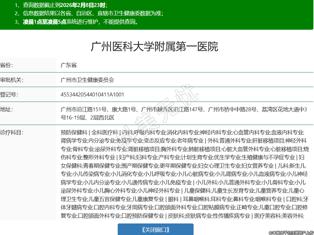 省份:廣東省審批機(jī)關(guān):廣州市衛(wèi)生健康委員會(huì)登記號(hào):45534420544010411A1001地址:廣州市沿江路151號(hào)、康大路1號(hào)、廣州市越秀區(qū)沿江路147號(hào)、廣州市橋中中路28號(hào)、荔灣區(qū)花地大道中3號(hào)16-19層、2層西北區(qū)診療科目:預(yù)防保健科 | 全科醫(yī)療科 | 內(nèi)科;呼吸內(nèi)科專(zhuān)業(yè);消化內(nèi)科專(zhuān)業(yè);神經(jīng)內(nèi)科專(zhuān)業(yè);心血管內(nèi)科專(zhuān)業(yè);血液內(nèi)科專(zhuān)業(yè);腎病學(xué)專(zhuān)業(yè);內(nèi)分泌專(zhuān)業(yè);免疫學(xué)專(zhuān)業(yè);變態(tài)反應(yīng)專(zhuān)業(yè);老年病專(zhuān)業(yè) | 外科;普通外科專(zhuān)業(yè);肝臟移植項(xiàng)目;神經(jīng)外科專(zhuān)業(yè);骨科專(zhuān)業(yè);泌尿外科專(zhuān)業(yè);腎臟移植項(xiàng)目;胸外科專(zhuān)業(yè);肺臟移植項(xiàng)目;心臟大血管外科專(zhuān)業(yè);心臟移植項(xiàng)目;燒傷科專(zhuān)業(yè);整形外科專(zhuān)業(yè) | 婦產(chǎn)科;婦科專(zhuān)業(yè);產(chǎn)科專(zhuān)業(yè);計(jì)劃生育專(zhuān)業(yè);優(yōu)生學(xué)專(zhuān)業(yè);生殖健康與不孕癥專(zhuān)業(yè) | 婦女保健科;青春期保健專(zhuān)業(yè);圍產(chǎn)期保健專(zhuān)業(yè);更年期保健專(zhuān)業(yè);婦女心理衛(wèi)生專(zhuān)業(yè);婦女營(yíng)養(yǎng)專(zhuān)業(yè) | 兒科;新生兒專(zhuān)業(yè);小兒傳染病專(zhuān)業(yè);小兒消化專(zhuān)業(yè);小兒呼吸專(zhuān)業(yè);小兒心臟病專(zhuān)業(yè);小兒腎病專(zhuān)業(yè);小兒血液病專(zhuān)業(yè);小兒神經(jīng)病學(xué)專(zhuān)業(yè);小兒內(nèi)分泌專(zhuān)業(yè);小兒遺傳病專(zhuān)業(yè);小兒免疫專(zhuān)業(yè) | 小兒外科;小兒普通外科專(zhuān)業(yè);小兒骨科專(zhuān)業(yè);小兒泌尿外科專(zhuān)業(yè);小兒胸心外科專(zhuān)業(yè);小兒神經(jīng)外科專(zhuān)業(yè) | 兒童保健科;兒童生長(zhǎng)發(fā)育專(zhuān)業(yè);兒童營(yíng)養(yǎng)專(zhuān)業(yè);兒童心理衛(wèi)生專(zhuān)業(yè);兒童五官保健專(zhuān)業(yè);兒童康復(fù)專(zhuān)業(yè) | 眼科 | 耳鼻咽喉科;耳科專(zhuān)業(yè);鼻科專(zhuān)業(yè);咽喉科專(zhuān)業(yè) | 口腔科;牙體牙髓病專(zhuān)業(yè);口腔內(nèi)科專(zhuān)業(yè);牙周病專(zhuān)業(yè);口腔頜面外科專(zhuān)業(yè);口腔粘膜病專(zhuān)業(yè);正畸專(zhuān)業(yè);兒童口腔專(zhuān)業(yè);口腔修復(fù)專(zhuān)業(yè);口腔頜面外科專(zhuān)業(yè);口腔預(yù)防保健專(zhuān)業(yè) | 皮膚科;皮膚病專(zhuān)業(yè);性傳播疾病專(zhuān)業(yè) | 醫(yī)療美容科;美容外科;美容牙科;美容皮膚科;美容中醫(yī)科 | 精神科;精神病專(zhuān)業(yè);精神衛(wèi)生專(zhuān)業(yè);精神康復(fù)專(zhuān)業(yè);社區(qū)防治專(zhuān)業(yè);臨床心理專(zhuān)業(yè);司法精神專(zhuān)業(yè) | 傳染科;腸道傳染病專(zhuān)業(yè);呼吸道傳染病專(zhuān)業(yè);肝炎專(zhuān)業(yè);蟲(chóng)媒傳染病專(zhuān)業(yè);動(dòng)物源性傳染病專(zhuān)業(yè);蠕蟲(chóng)病專(zhuān)業(yè) | 腫瘤科 | 急診醫(yī)學(xué)科 | 康復(fù)醫(yī)學(xué)科 | 麻醉科 | 疼痛科 | 重癥醫(yī)學(xué)科 | 醫(yī)學(xué)檢驗(yàn)科;臨床體液、血液專(zhuān)業(yè);臨床微生物學(xué)專(zhuān)業(yè);臨床化學(xué)檢驗(yàn)專(zhuān)業(yè);臨床免疫、血清學(xué)專(zhuān)業(yè);臨床細(xì)胞分子遺傳學(xué)專(zhuān)業(yè) | 病理科 | 醫(yī)學(xué)影像科;X線(xiàn)診斷專(zhuān)業(yè);CT診斷專(zhuān)業(yè);磁共振成像診斷專(zhuān)業(yè);核醫(yī)學(xué)專(zhuān)業(yè);超聲診斷專(zhuān)業(yè);心電診斷專(zhuān)業(yè);腦電及腦血流圖診斷專(zhuān)業(yè);神經(jīng)肌肉電圖專(zhuān)業(yè);介入放射學(xué)專(zhuān)業(yè);放射治療專(zhuān)業(yè) | 中醫(yī)科;內(nèi)科專(zhuān)業(yè);外科專(zhuān)業(yè);婦產(chǎn)科專(zhuān)業(yè);兒科專(zhuān)業(yè);皮膚科專(zhuān)業(yè);眼科專(zhuān)業(yè);耳鼻咽喉科專(zhuān)業(yè);口腔科專(zhuān)業(yè);腫瘤科專(zhuān)業(yè);骨傷科專(zhuān)業(yè);肛腸科專(zhuān)業(yè);老年病科專(zhuān)業(yè);針灸科專(zhuān)業(yè);推拿科專(zhuān)業(yè);康復(fù)醫(yī)學(xué)專(zhuān)業(yè);急診科專(zhuān)業(yè);預(yù)防保健科專(zhuān)業(yè) | 中西醫(yī)結(jié)合科******級(jí)別:三級(jí)法定代表人:黃錦坤主要負(fù)責(zé)人:黃錦坤執(zhí)業(yè)許可證有效期:2015/10/30 -至- 2030/10/30 -