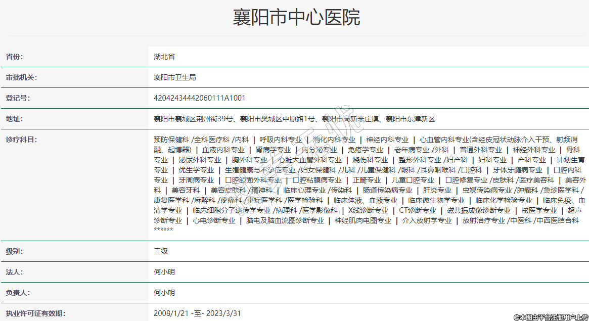 審批機(jī)關(guān):襄陽(yáng)市衛(wèi)生局