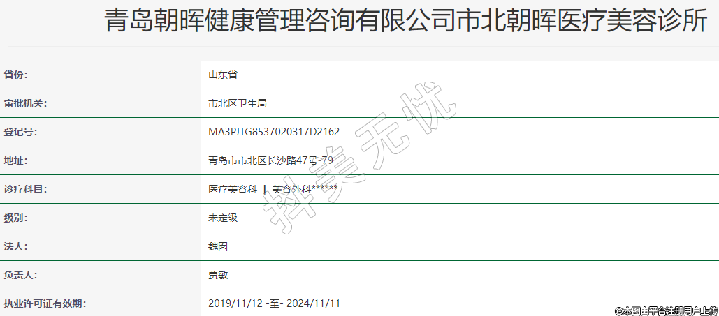 青島朝暉健康管理咨詢有限公司市北朝暉醫(yī)療美容診所
