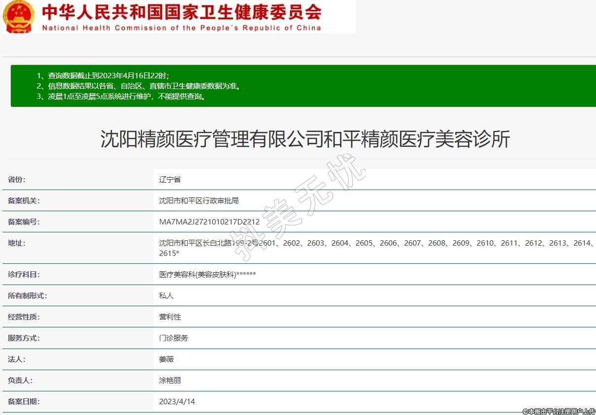 沈陽(yáng)精顏醫(yī)療管理有限公司和平精顏醫(yī)療美容診所
