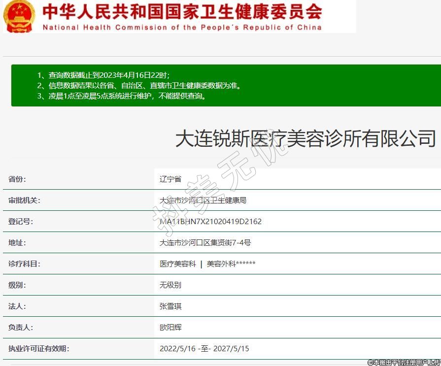 審批機關(guān):大連市沙河口區(qū)衛(wèi)生健康局