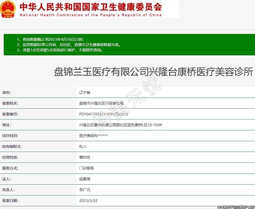 盤錦蘭玉醫(yī)療有限公司興隆臺康橋醫(yī)療美容診所