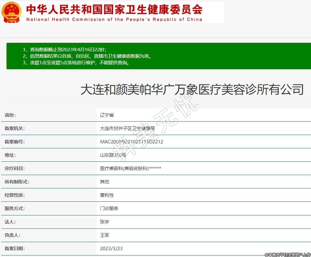 大連和顏美帕華廣萬象醫(yī)療美容診所有公司
