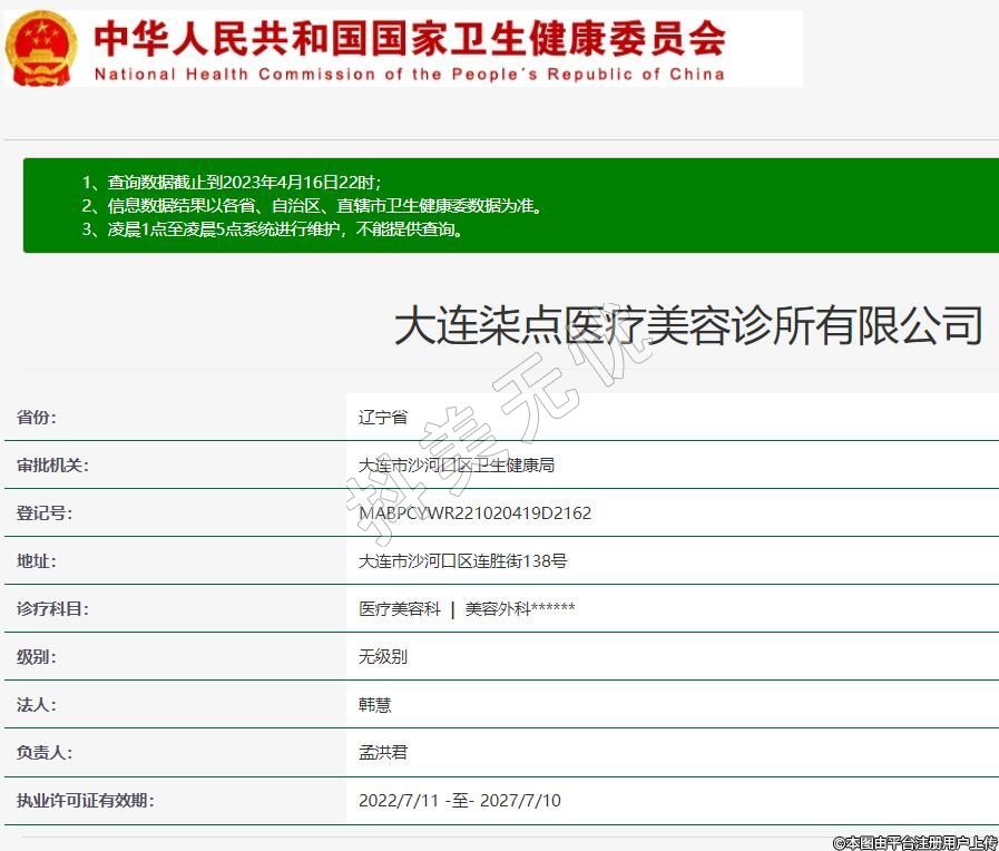 審批機關(guān):大連市沙河口區(qū)衛(wèi)生健康局