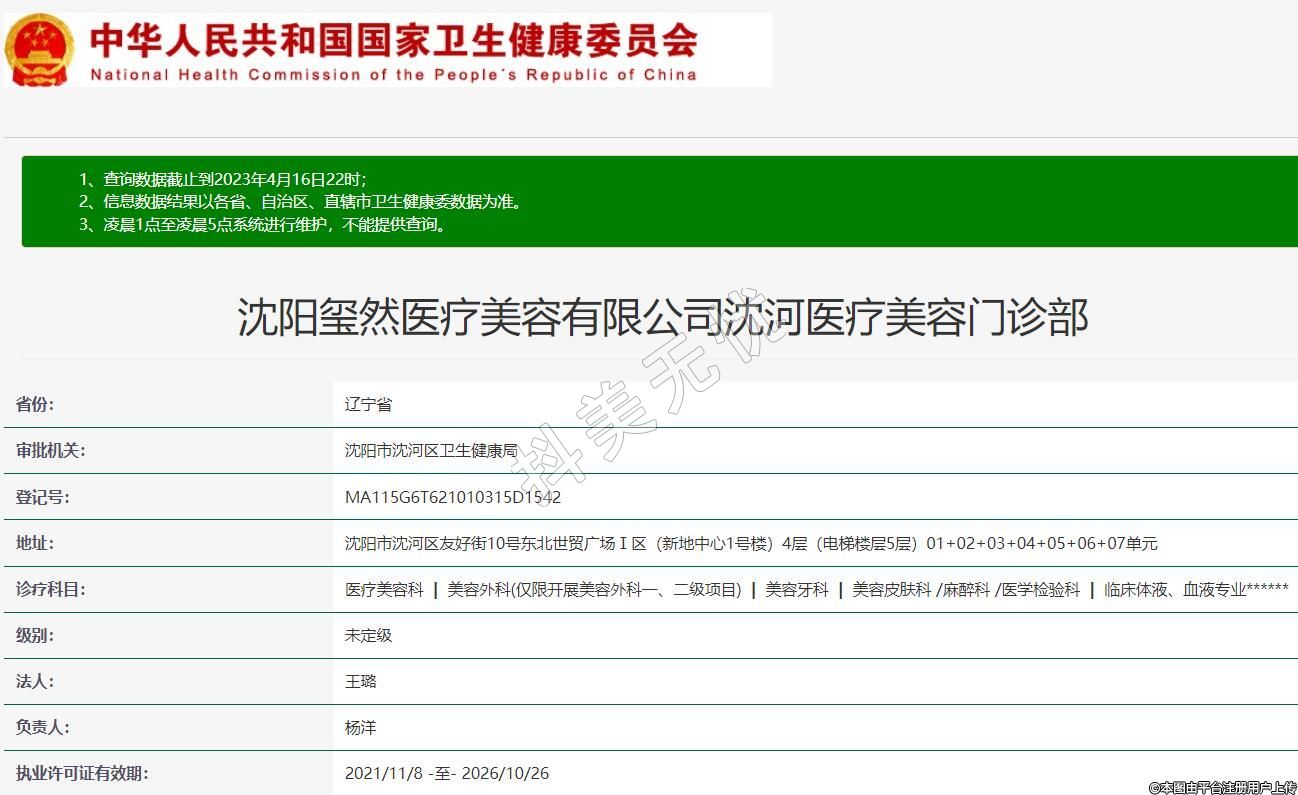 審批機關(guān):沈陽市沈河區(qū)衛(wèi)生健康局