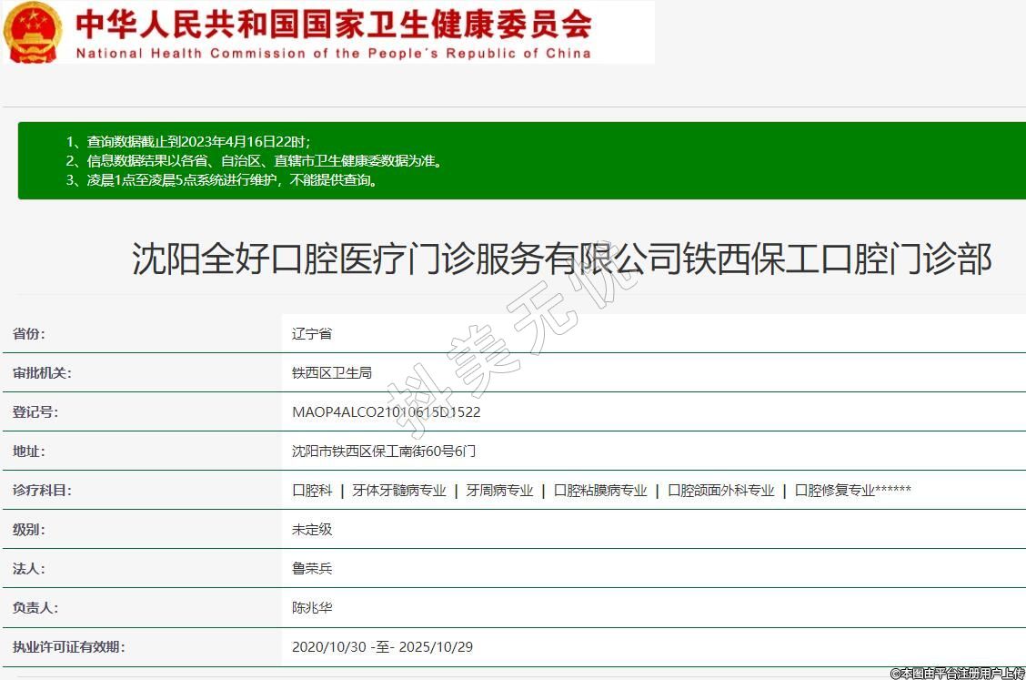 沈陽全好口腔醫(yī)療門診服務(wù)有限公司鐵西保工口腔門診部