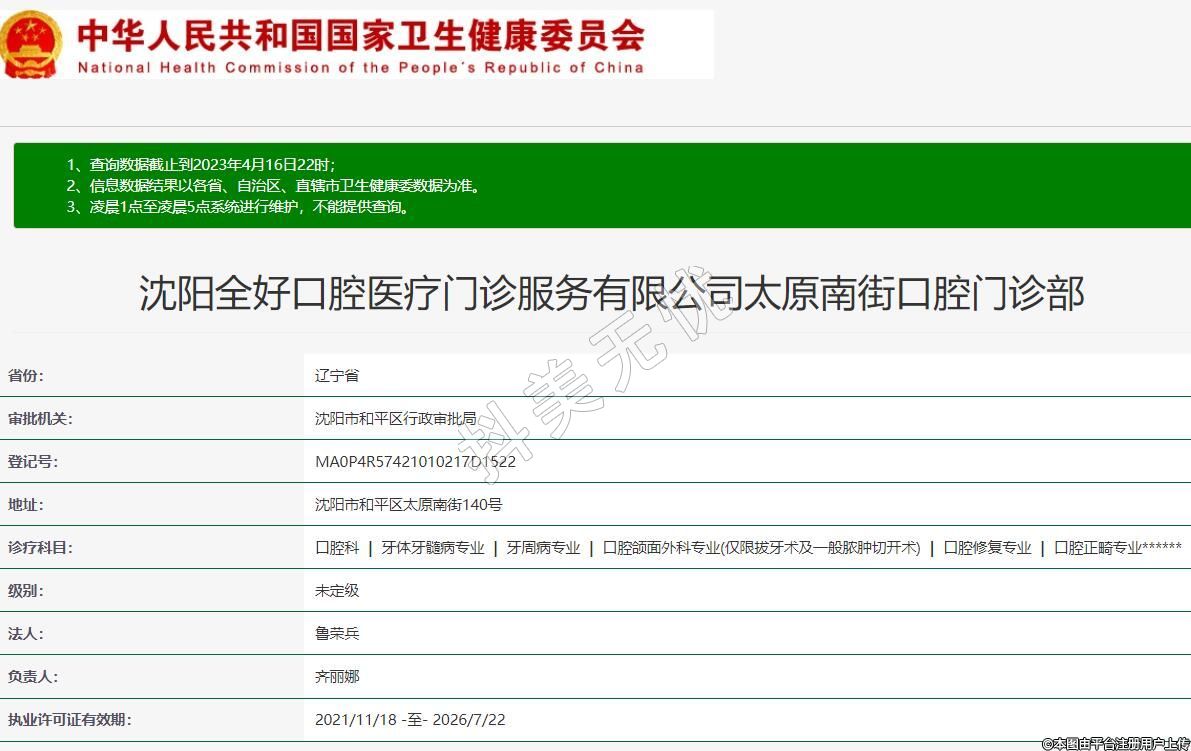 沈陽全好口腔醫(yī)療門診服務(wù)有限公司太原南街口腔門診部