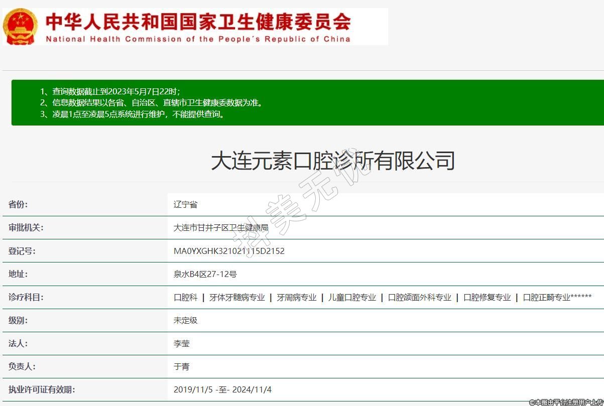 執(zhí)業(yè)許可證有效期:2019/11/5 -至- 2024/11/4