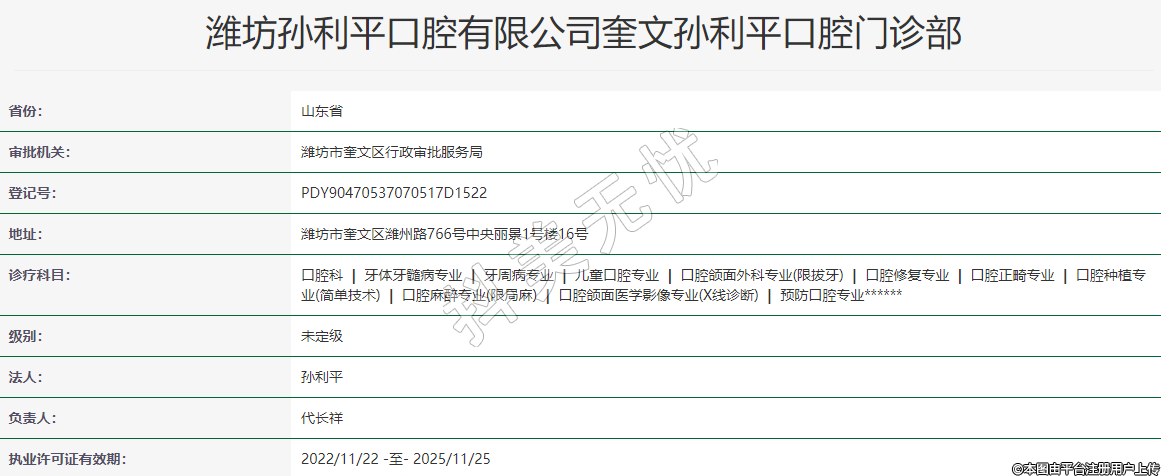 濰坊孫利平口腔有限公司奎文孫利平口腔門診部