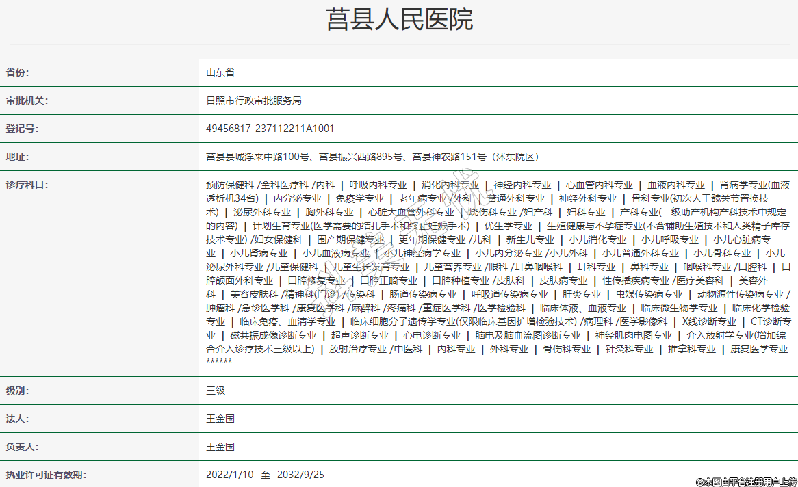 執(zhí)業(yè)許可證有效期:2022/1/10 -至- 2032/9/25