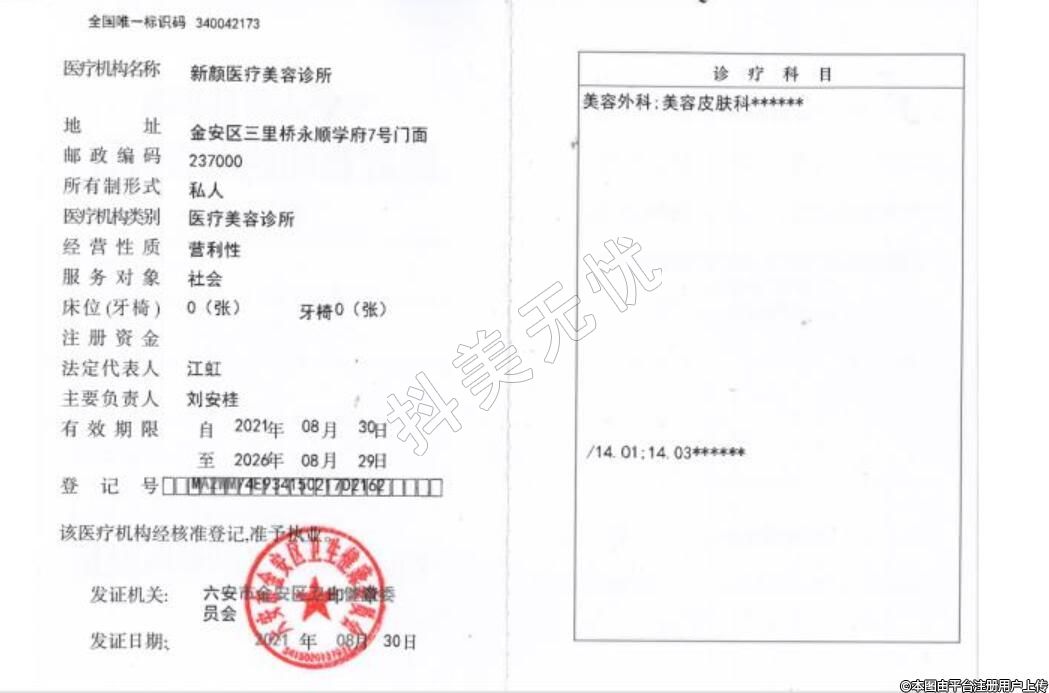 醫(yī)療機(jī)構(gòu)名稱:新顏醫(yī)療美容診所