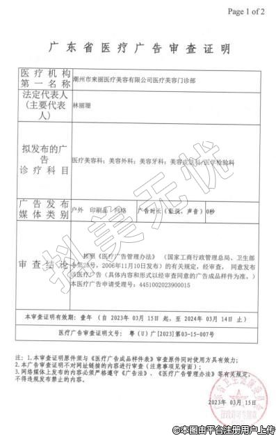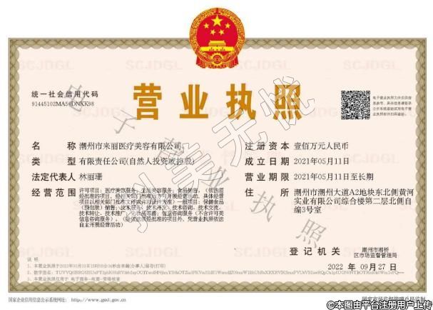 機構(gòu)名稱:潮州市來麗醫(yī)療美容有限公司醫(yī)療美容門診部