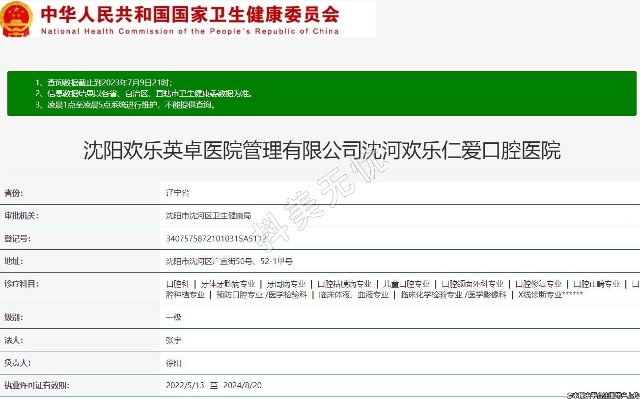 沈陽歡樂英卓醫(yī)院管理有限公司沈河歡樂仁愛口腔醫(yī)院