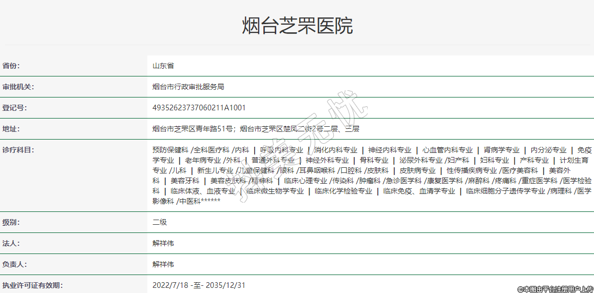 執(zhí)業(yè)許可證有效期:2022/7/18 -至- 2035/12/31