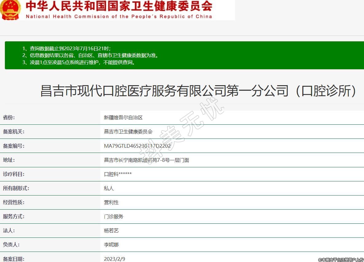 昌吉市現(xiàn)代口腔醫(yī)療服務(wù)有限公司第一分公司(口腔診所)