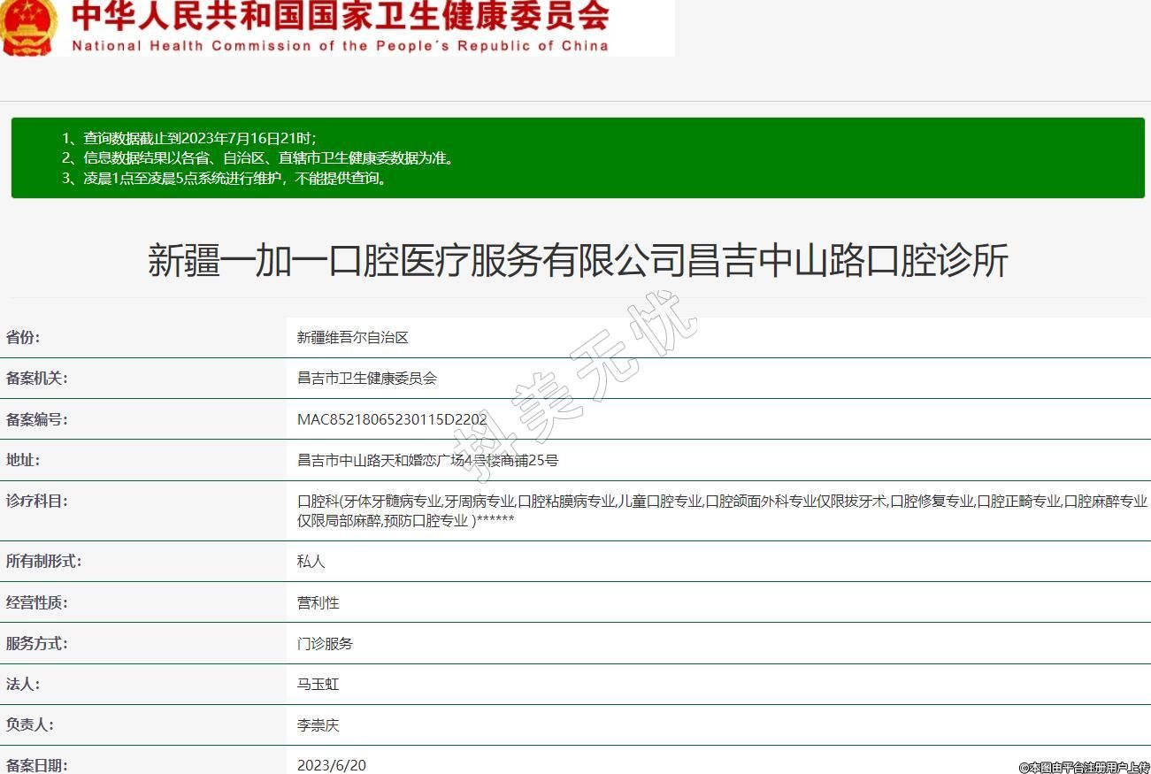 新疆一加一口腔醫(yī)療服務(wù)有限公司昌吉中山路口腔診所