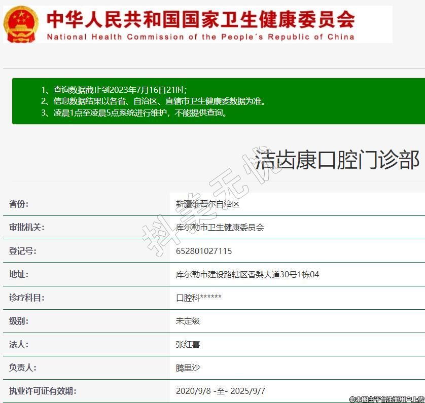庫爾勒潔齒康口腔,診療科目:口腔科******
