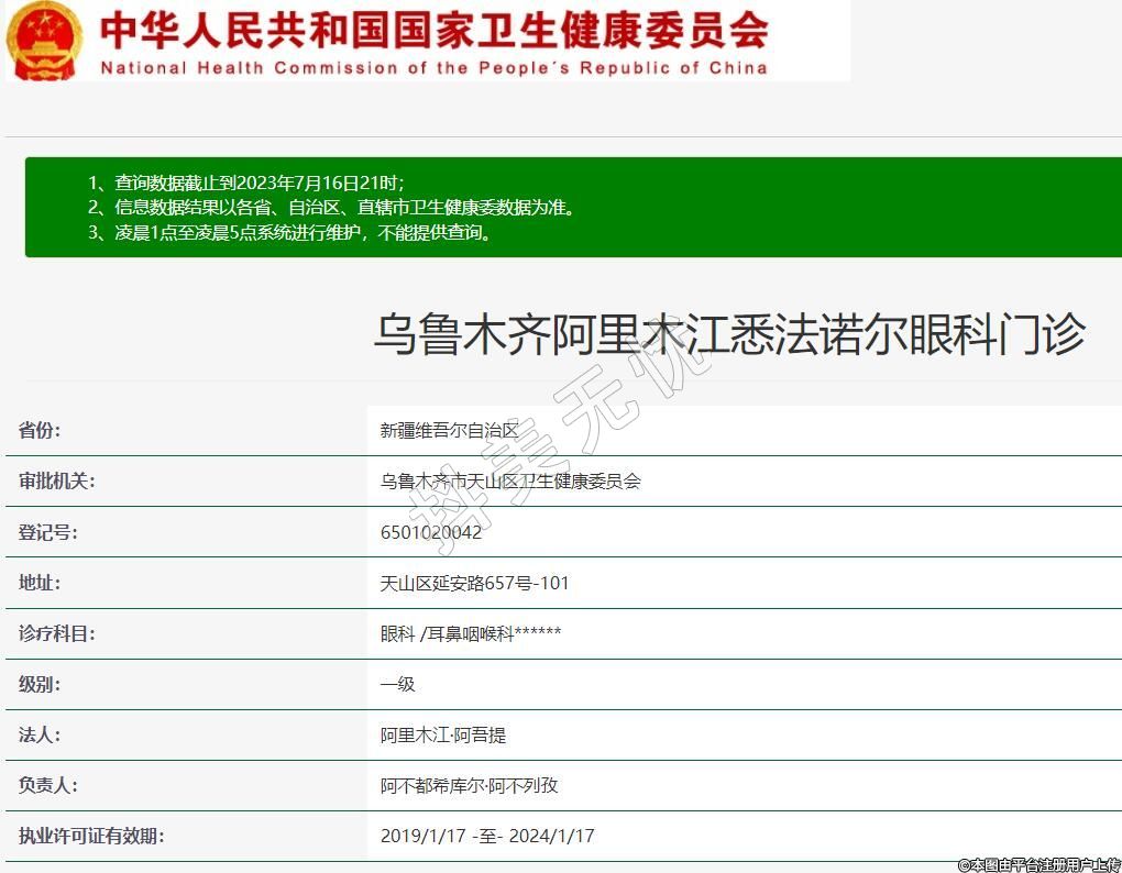烏魯木齊阿里木江悉法諾爾眼科門診