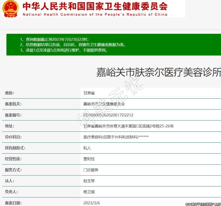 嘉峪關膚奈爾醫(yī)療美容,診療科目:醫(yī)療美容科(僅限于外科和皮膚科)******
