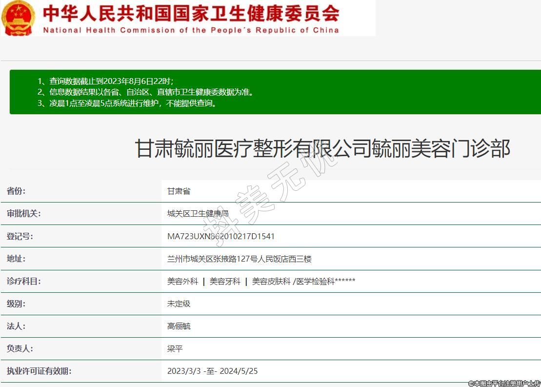 甘肅毓麗醫(yī)療整形有限公司毓麗美容門診部