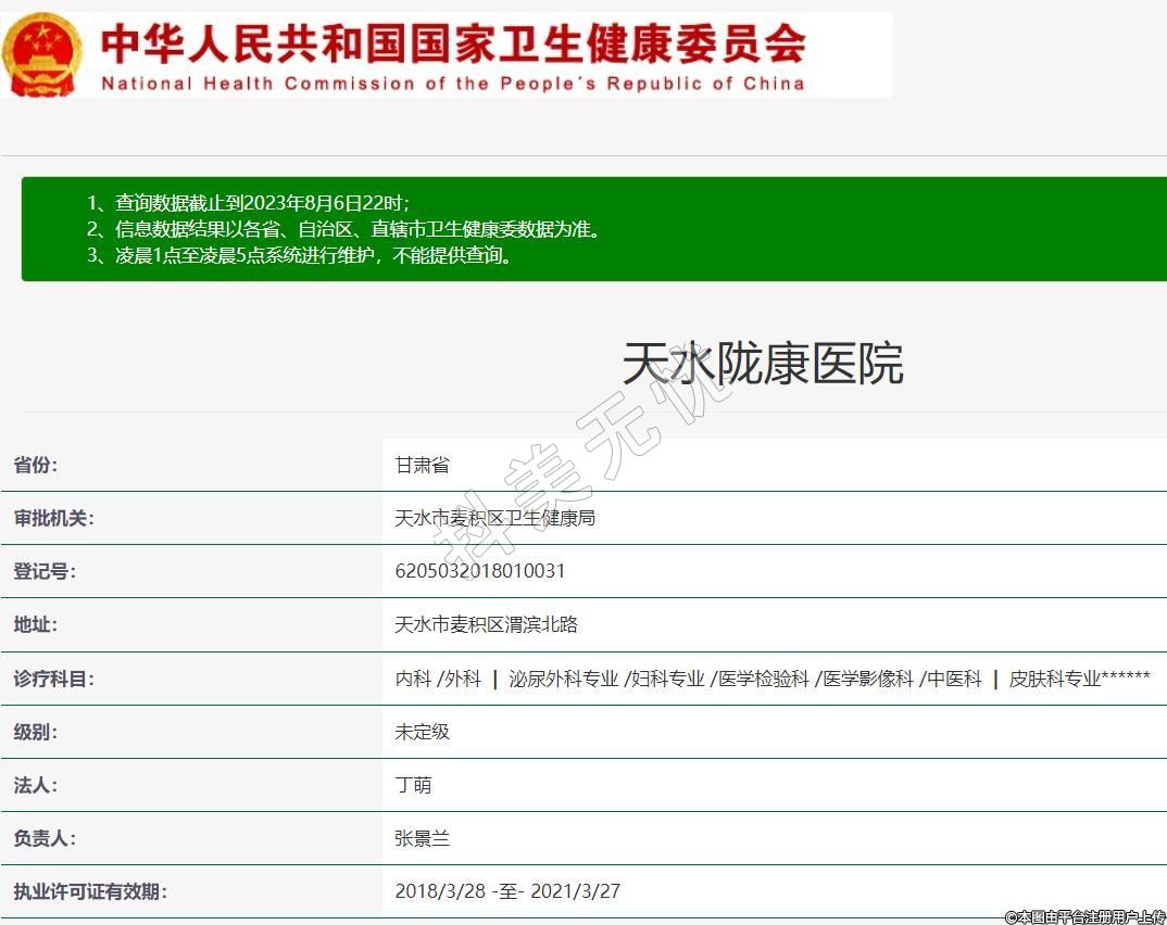 審批機(jī)關(guān):天水市麥積區(qū)衛(wèi)生健康局