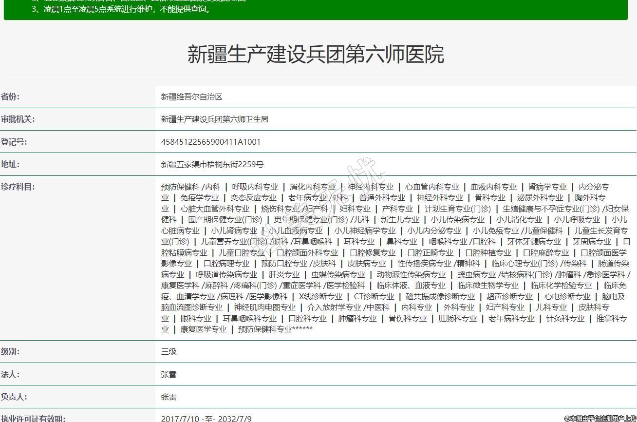 審批機(jī)關(guān):新疆生產(chǎn)建設(shè)兵團(tuán)第六師衛(wèi)生局