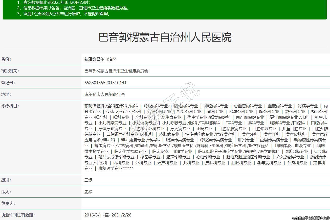 審批機關(guān):巴音郭楞蒙古自治州衛(wèi)生健康委員會