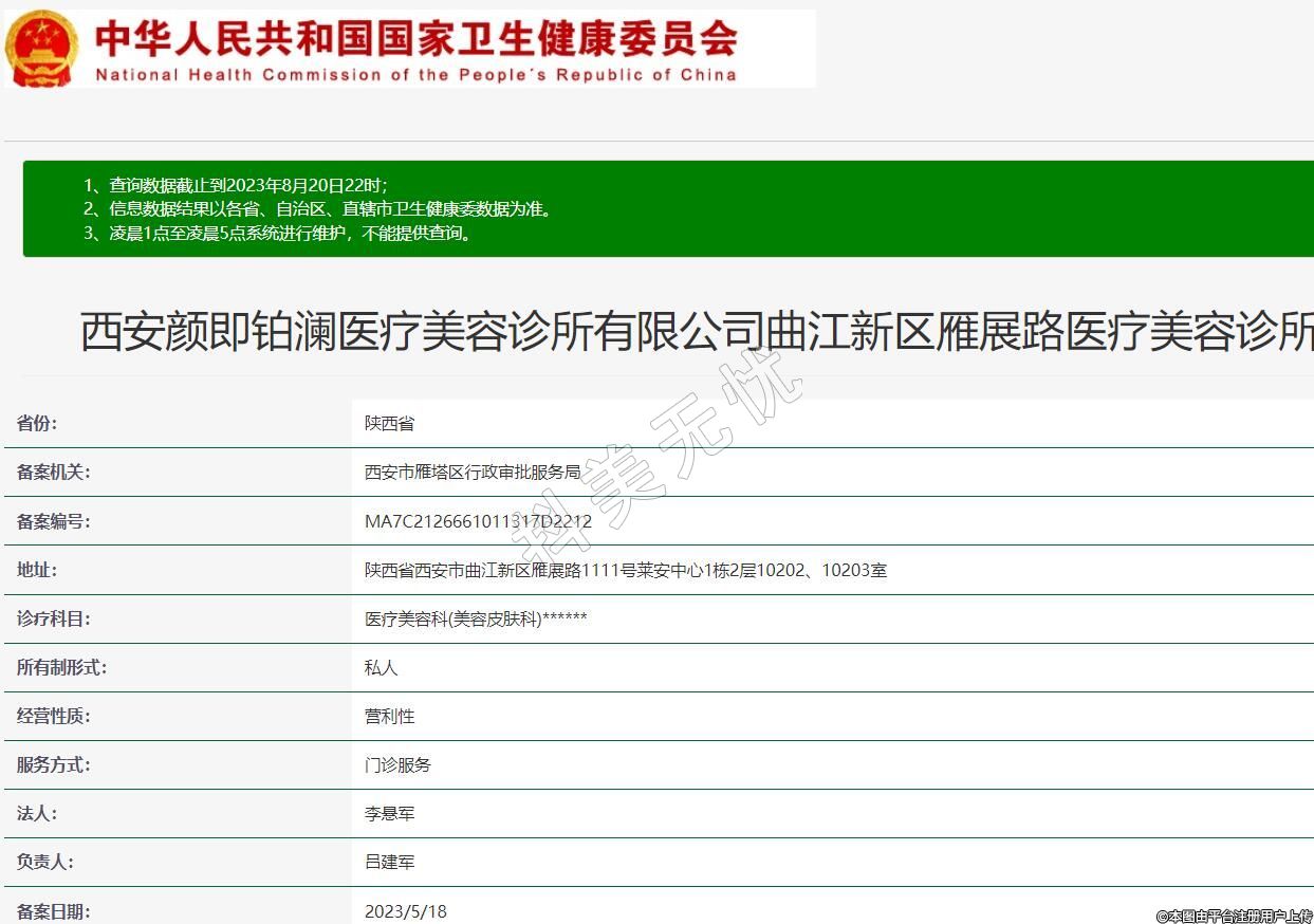 西安顏即鉑瀾醫(yī)療美容診所有限公司曲江新區(qū)雁展路醫(yī)療美容診所
