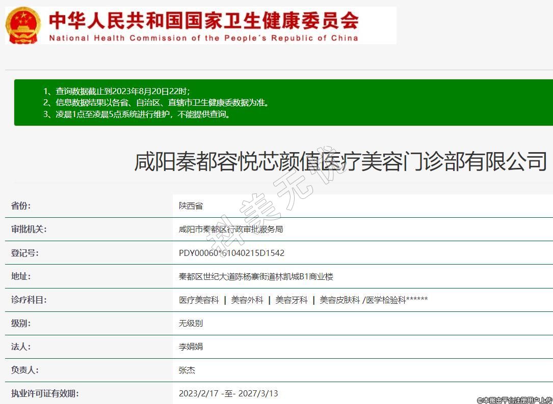 咸陽秦都容悅芯顏值醫(yī)療美容門診部有限公司