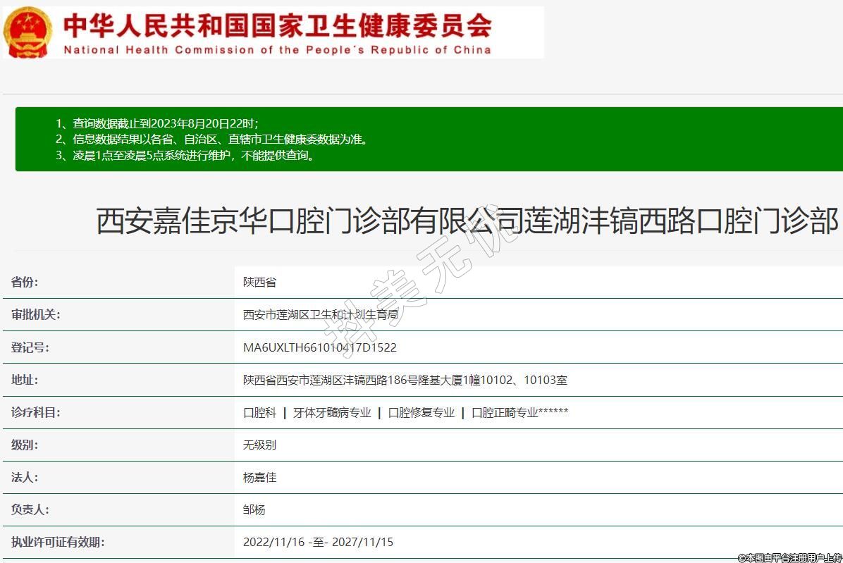 西安嘉佳京華口腔門診部有限公司蓮湖灃鎬西路口腔門診部