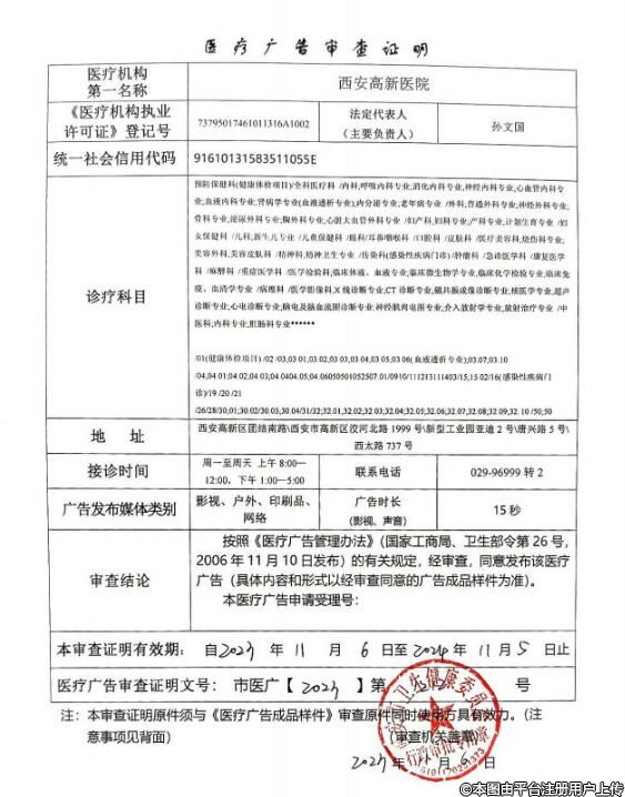 發(fā)證機(jī)關(guān):西安市衛(wèi)生健康委員會
