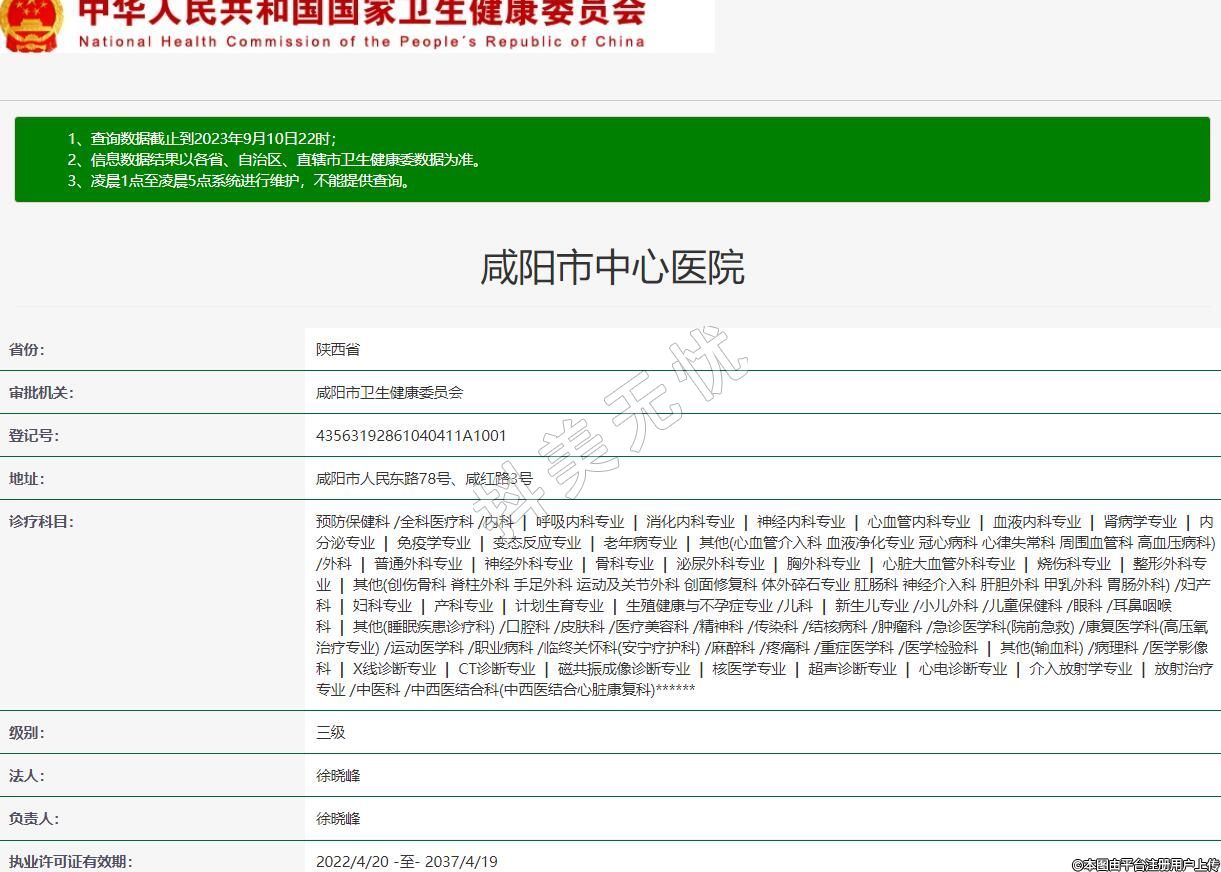 審批機關:咸陽市衛(wèi)生健康委員會