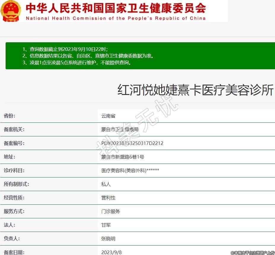 紅河悅她婕熹卡醫(yī)療美容診所,診療科目:醫(yī)療美容科(美容外科)******