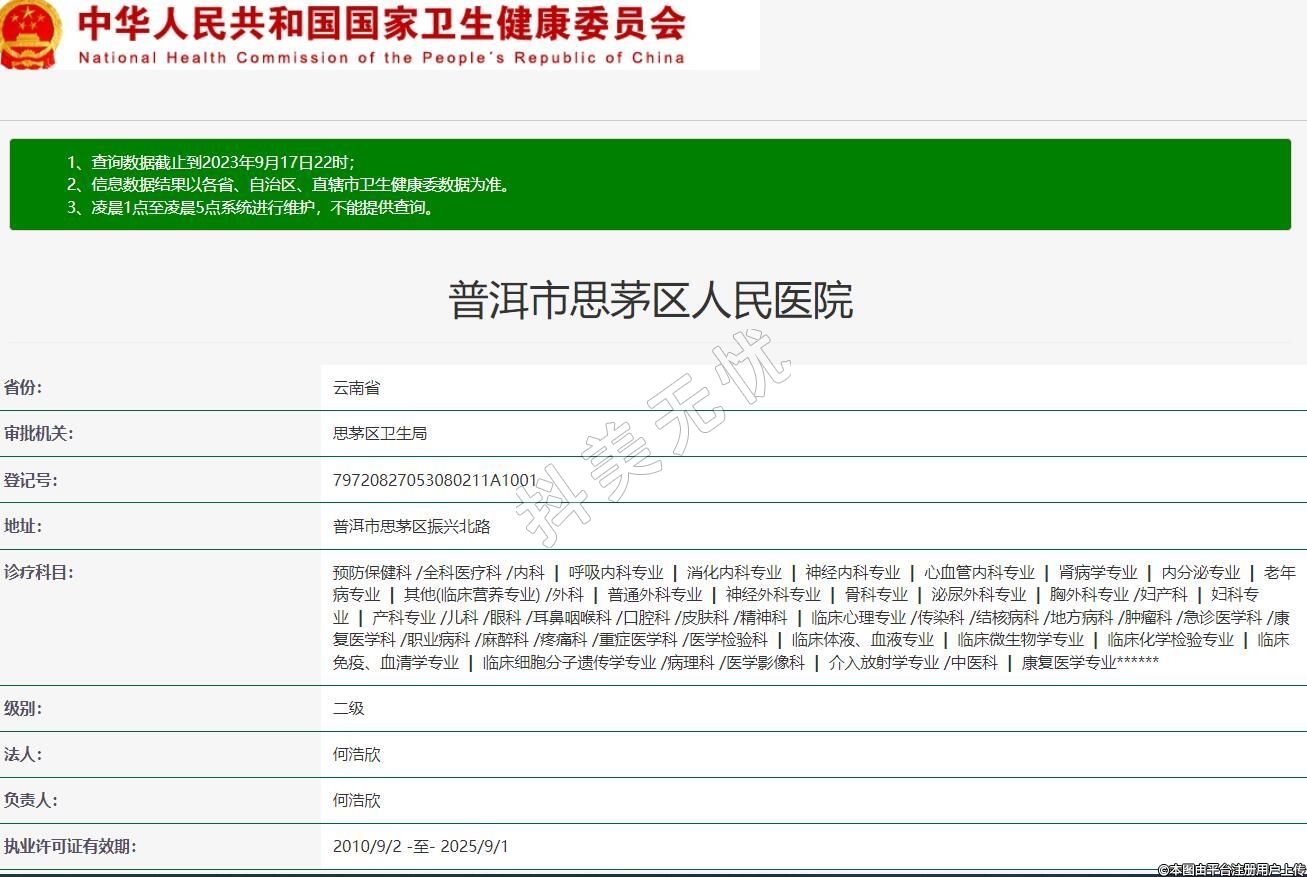 審批機(jī)關(guān):思茅區(qū)衛(wèi)生局