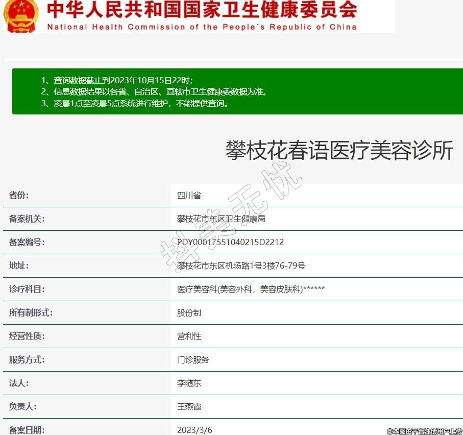 備案機關:攀枝花市東區(qū)衛(wèi)生健康局